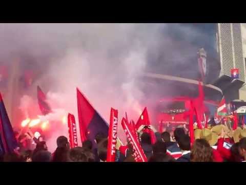 Recibimiento de la afición rojilla al C.A. Osasuna a su llegada al Reyno de Navarra